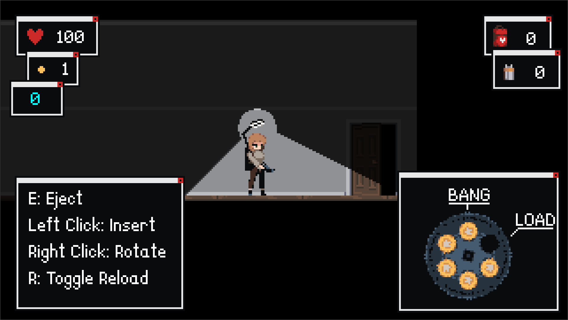 Ghost Hunt is a short game with its main mechanic about reloading a revolver, while trying to purge the angry spirits from an abandoned building.